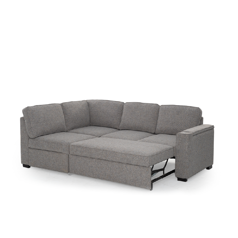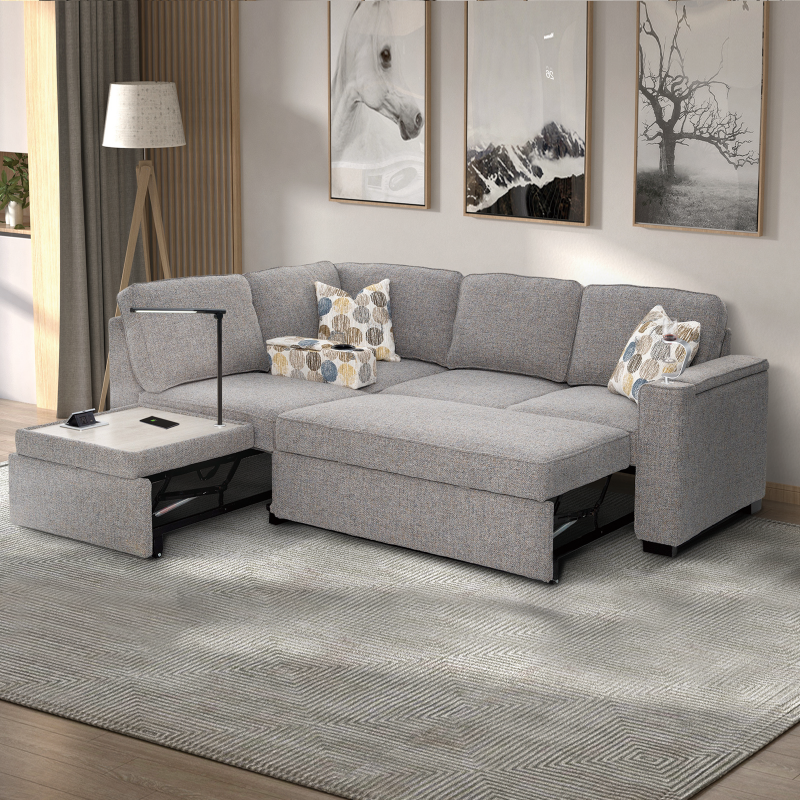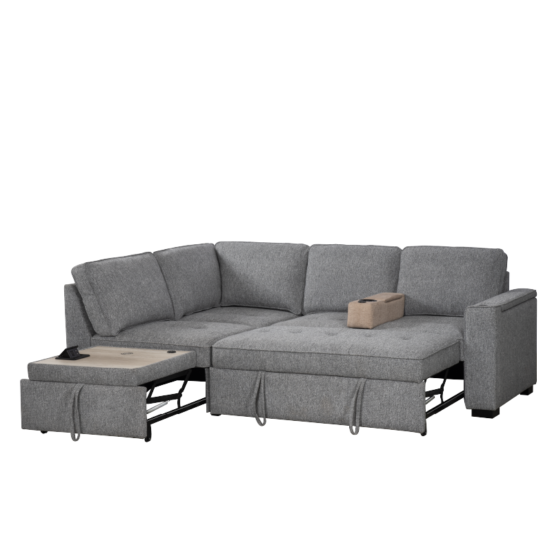 ● L-shape sofa can be easily converted into a bed. The equipped portable handle with the assistance of the bottom mechanism track device to quickly complete the bed transformation.