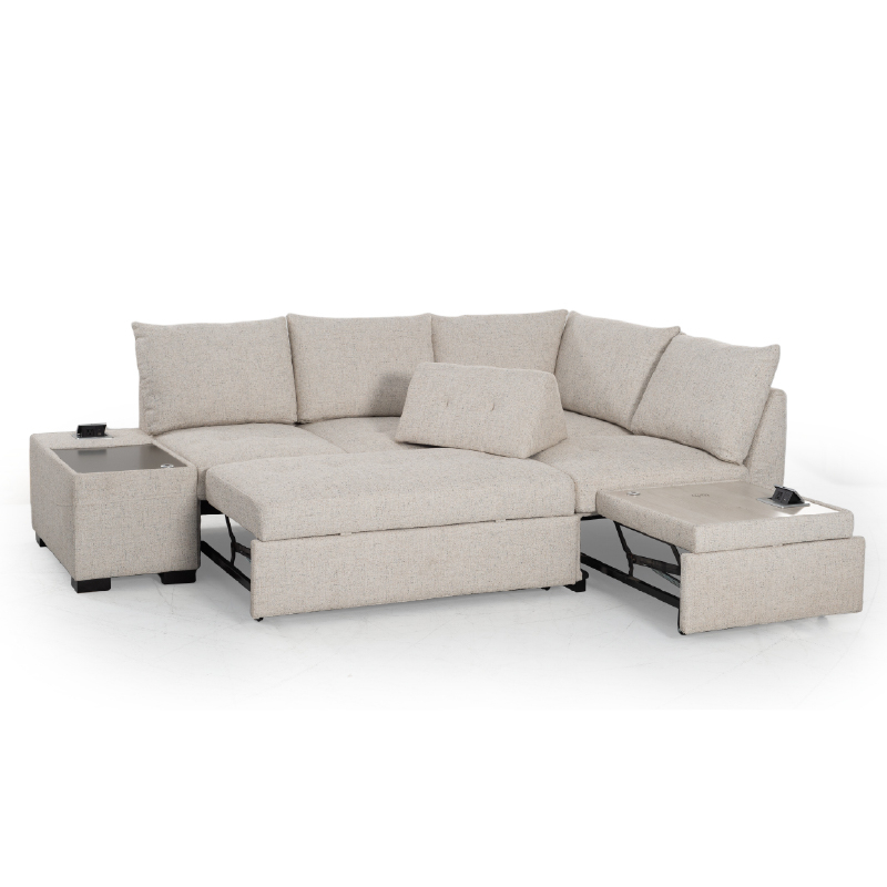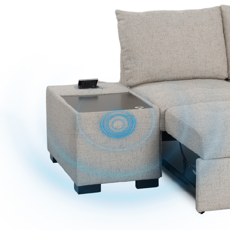 | ● Audio Boost Pro | ● Transformable sofa bed with effortless pull-out mechanism |
