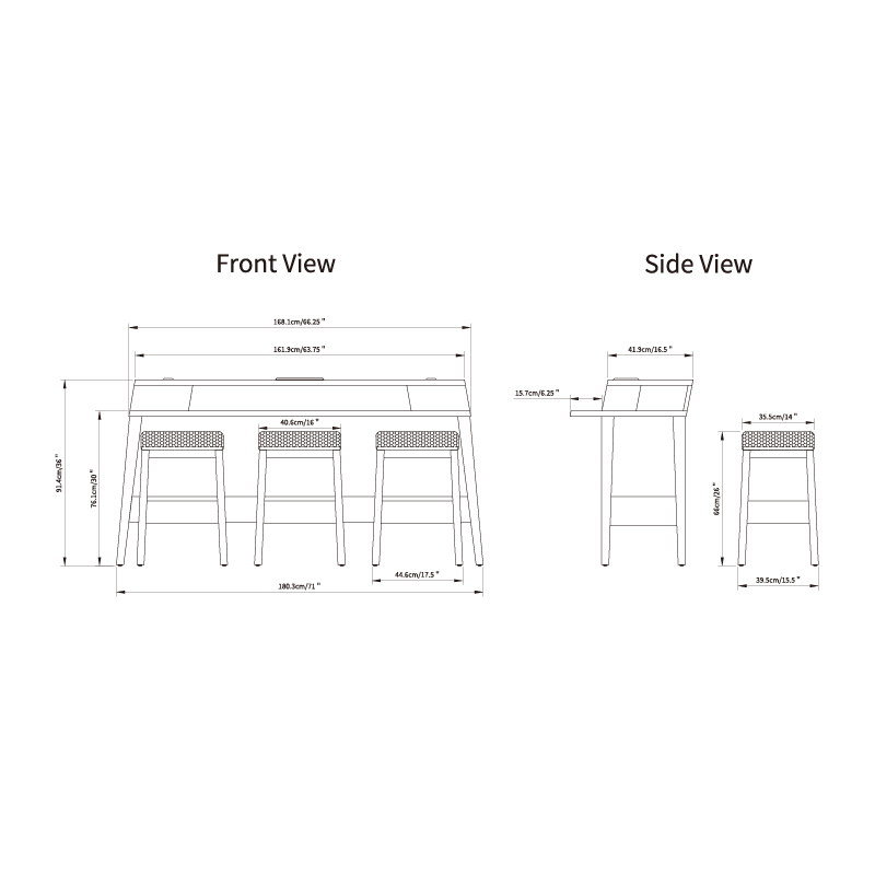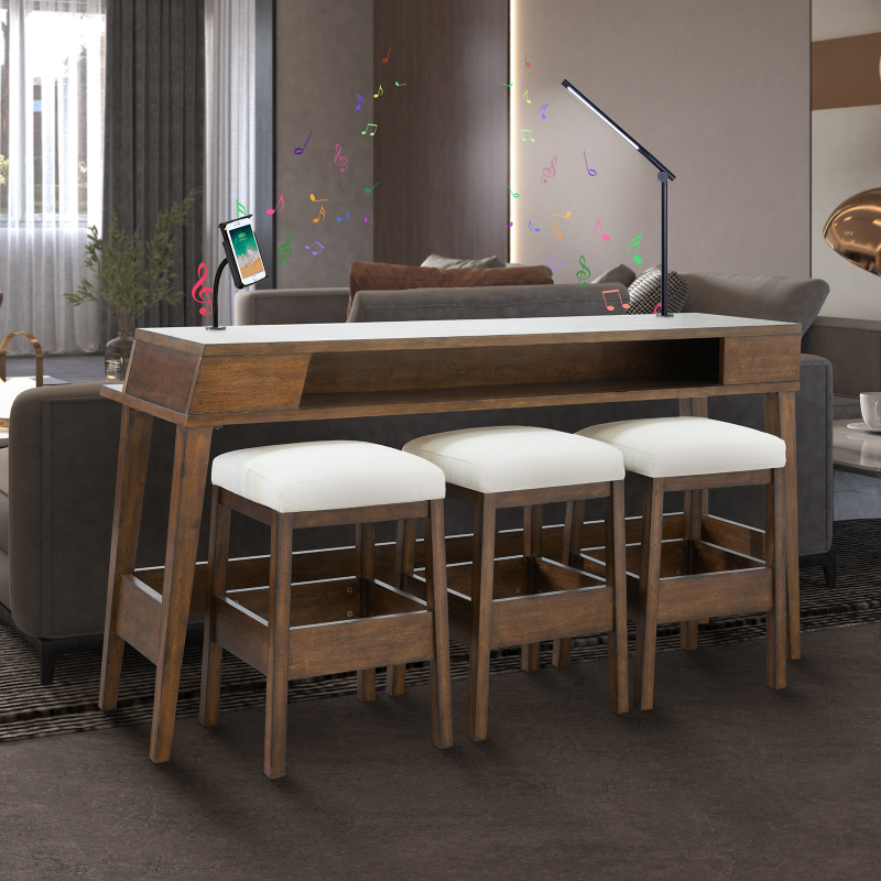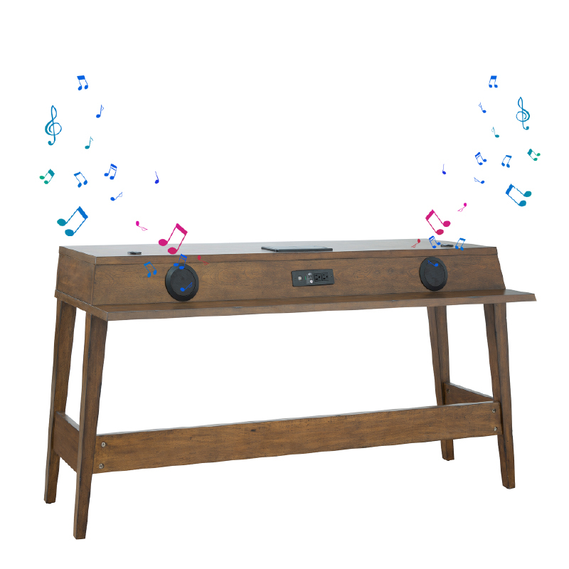 | ● Made with heavy-duty engineered wood | ● Bluetooth Audio & AC Outlet with Two USB Ports |