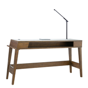 ● A Perfect Blend of Innovation and Style- This desk features an embedded Bluetooth speaker, AC outlet with dual USB ports, and dual power grommets, keeping your devices powered and connected. The standout feature is the pop-up UV sterilizer with wireless charging, combining hygiene with convenience. Softened trapezoid edges ensure safety, while practical open storage and a space-saving design complete this modern masterpiece.
