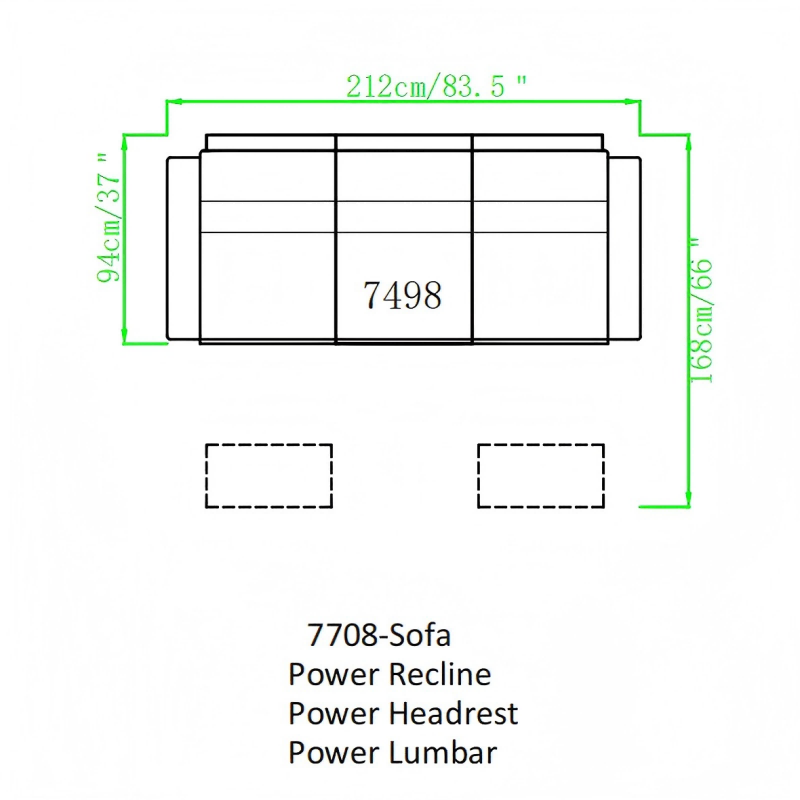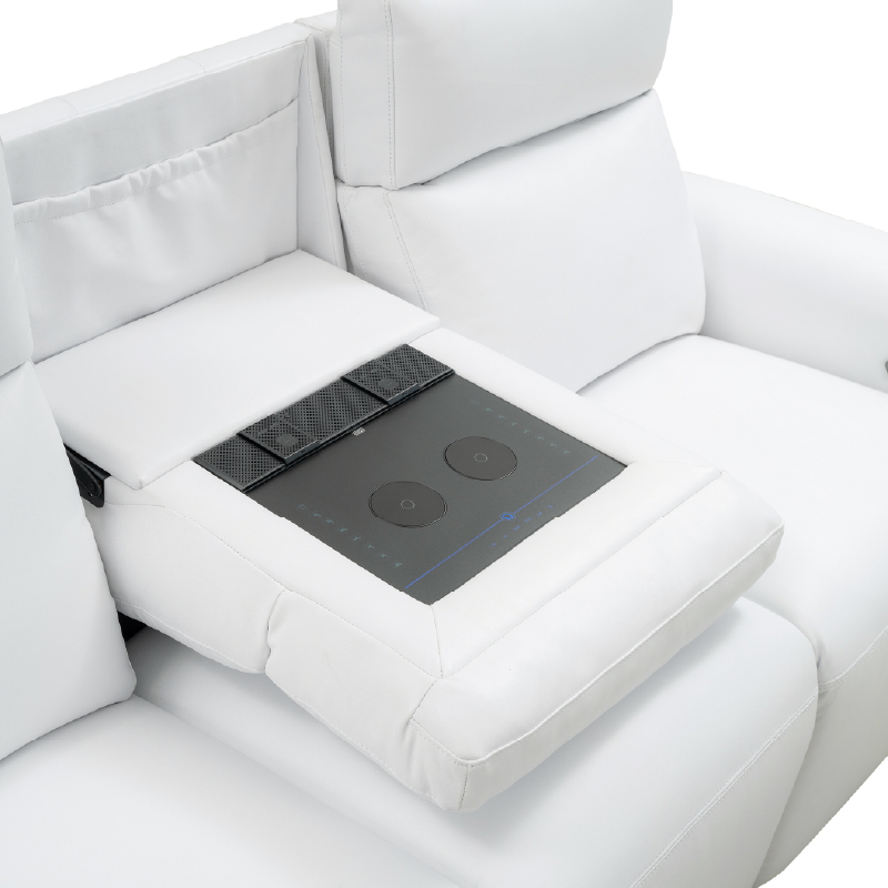 | ● Waterfall full pad over chaise design. | ● Trilogy multifunction controller with USB port. | ● Fold down middle back with iTable408. |